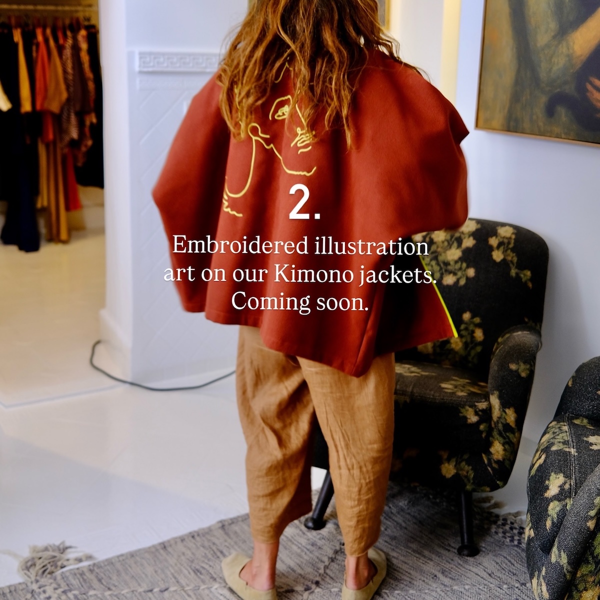 Illustration meets craftsmanship in our embroidered Kimono jackets. Each one is like wearing a sketch — bold, graphic, and individual.
