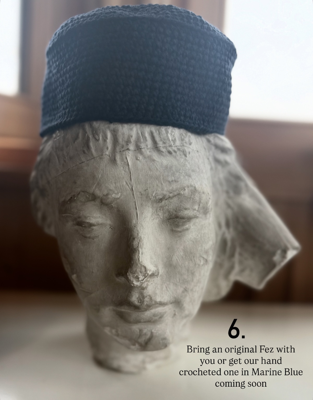 Carry a piece of tradition with you — or try our hand-crocheted Fez in Marine Blue. Heritage reinterpreted for today.
