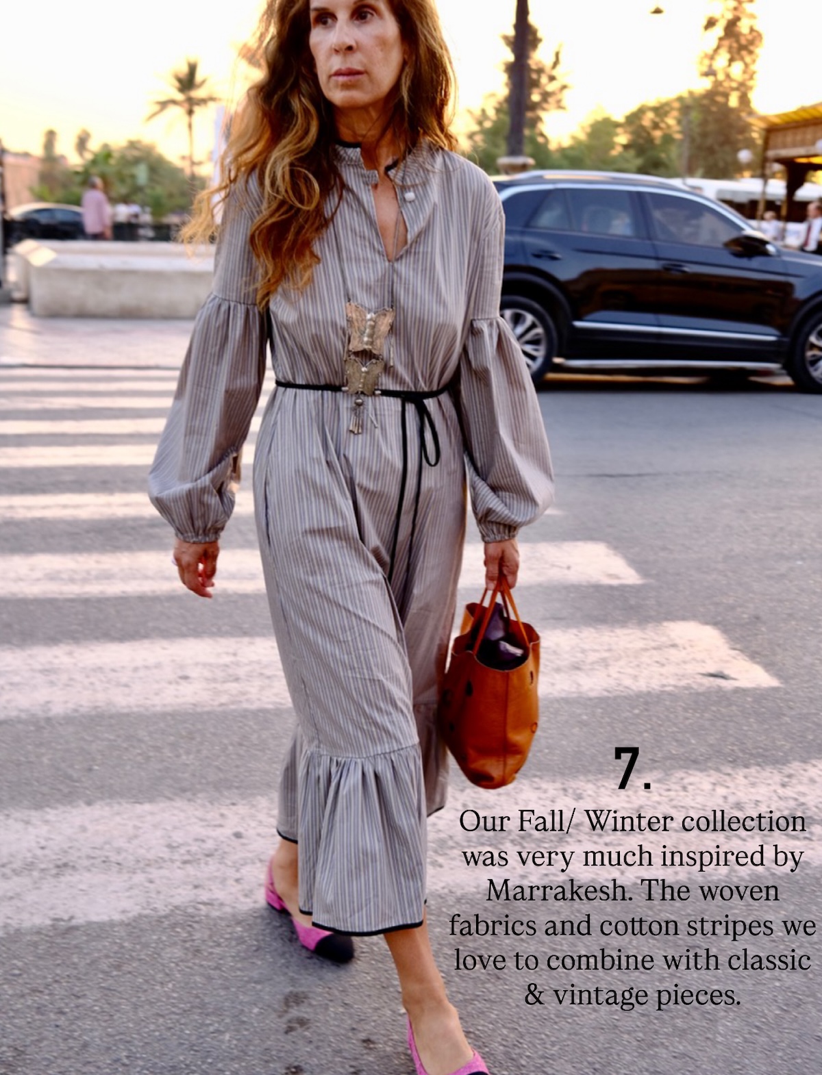Our Fall/Winter collection draws deeply from Marrakesh — the textures, stripes, and warm tones all inspired by the city’s atmosphere.