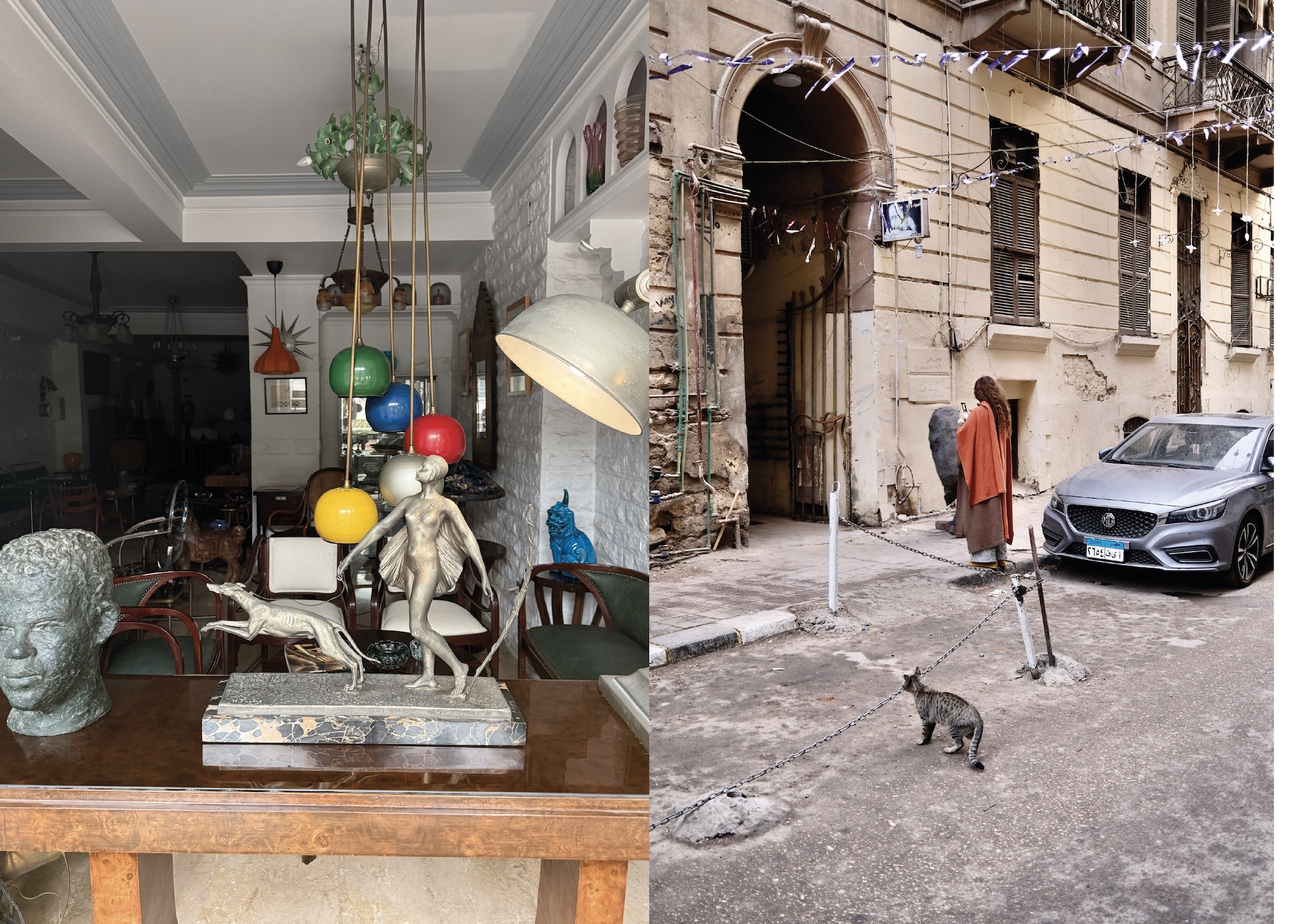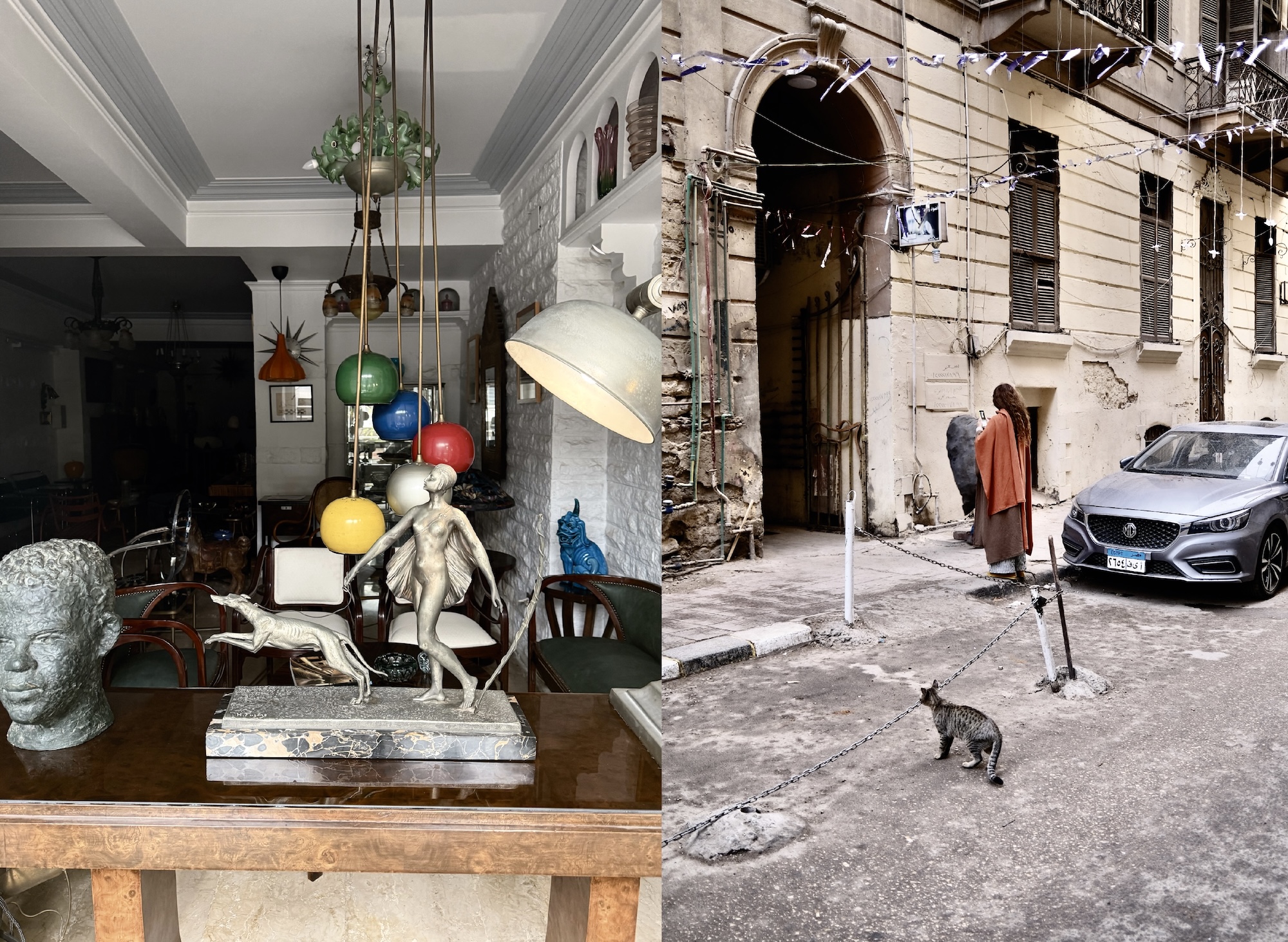 The atmospheric heart of Downtown’s antique trade. Unlike the tourist bazaars of Khan el-Khalili, the dealers here work with serious stock and a Cairene clientele: Khedival-era furniture, Orientalist paintings, silverware, monumental chandeliers. Allow time. Bring patience.