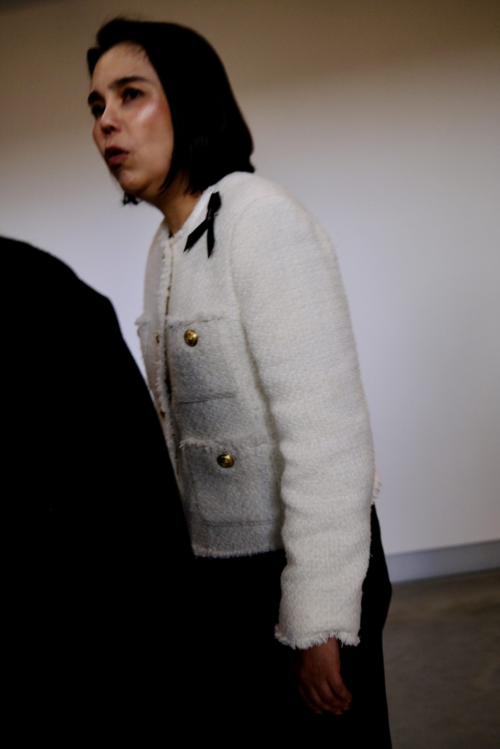 For that reason, I often find myself pleasantly distracted—not by the artworks alone, but by the visitors themselves. Style here is never uniform, never obedient. It lives in the mix: collectors in vintage Comme des Garçons, architects in sculptural tailoring, fashion insiders in unknown labels, artists in worn denim softened by precise details. It is a language of contrasts—effortless yet deliberate, understated yet quietly seductive.