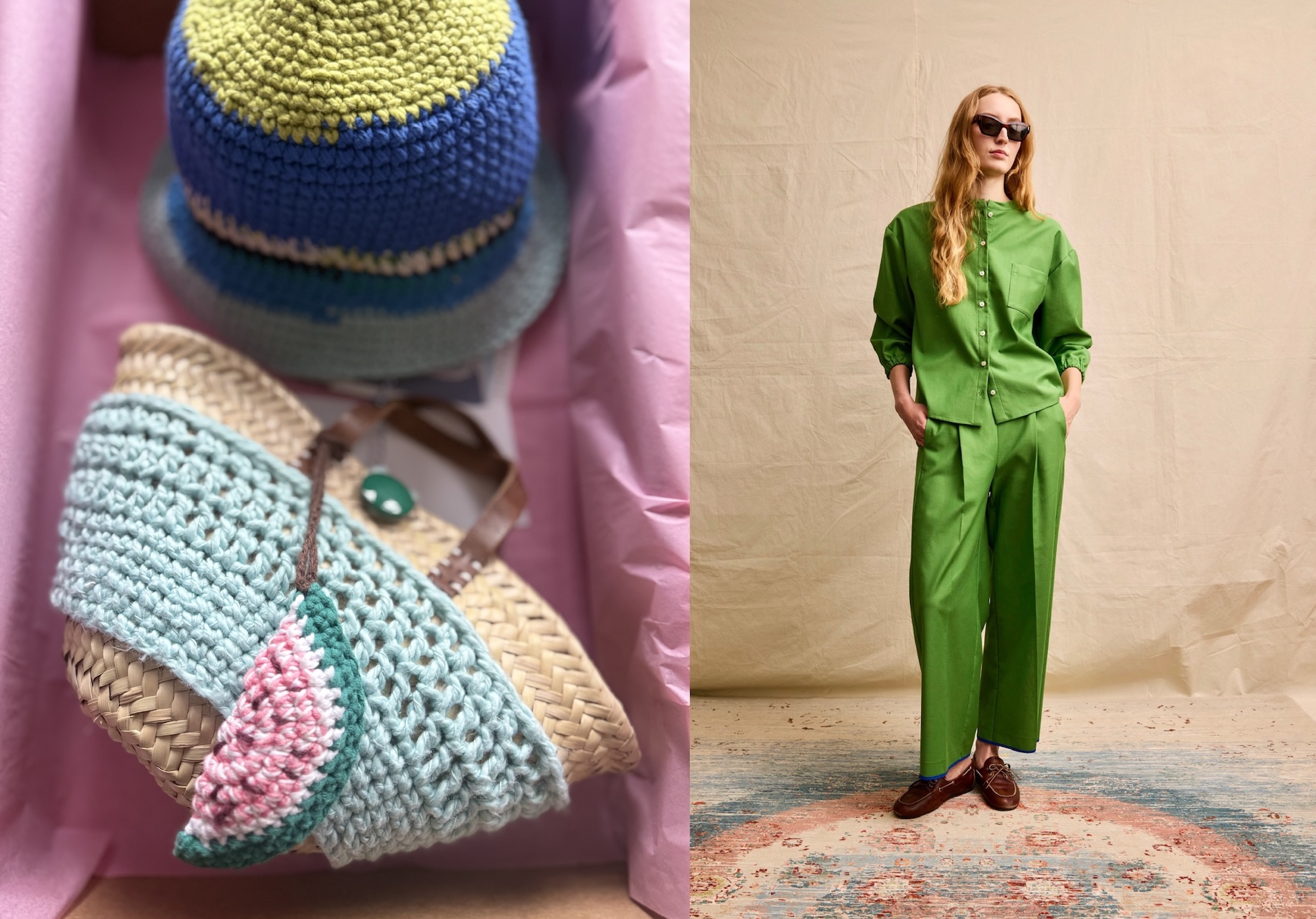 Let summer begin in the details. A hand crocheted Traveller hat or fine gauge sweater layered over a classic suit softens structure and injects optimism without sacrificing polish.