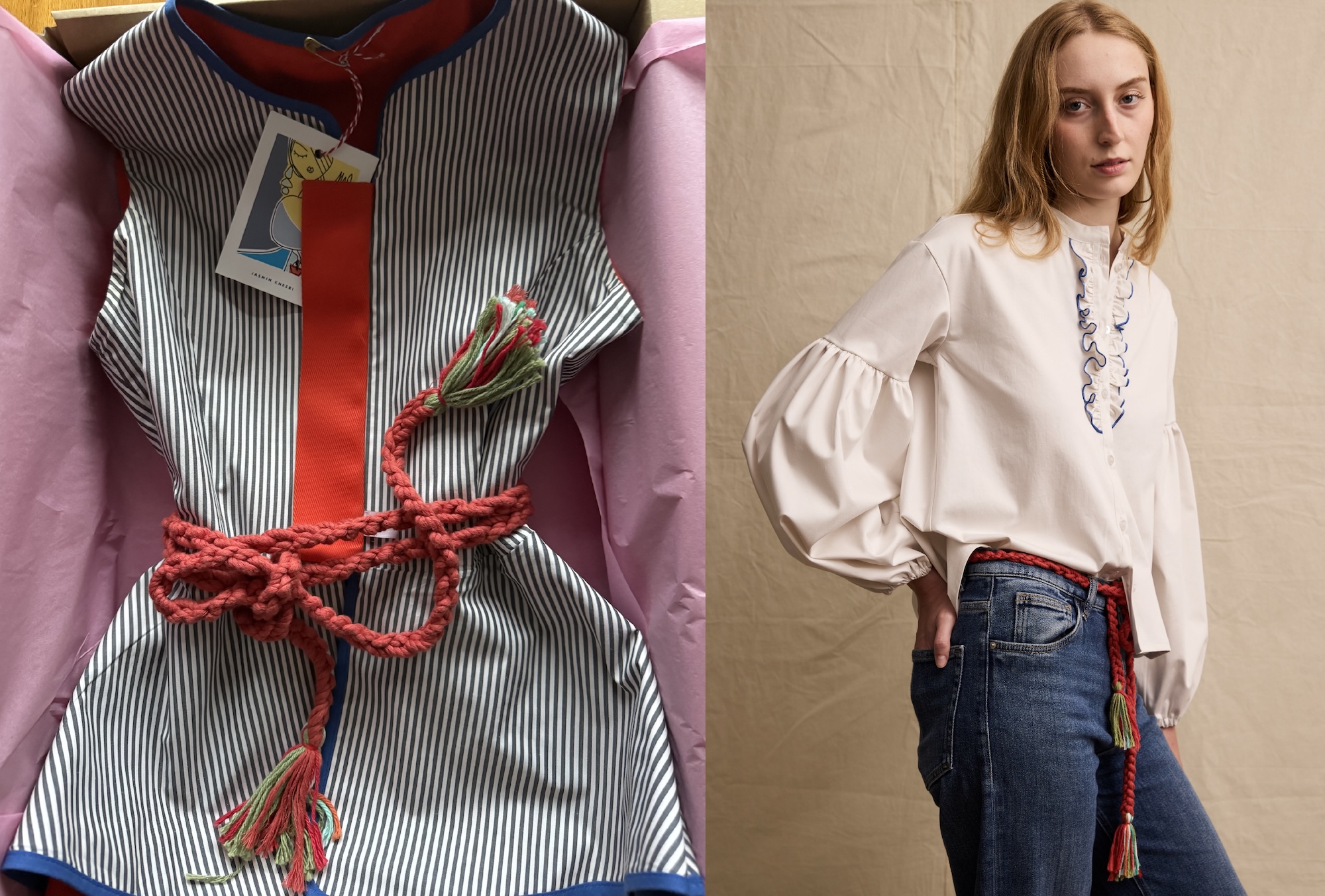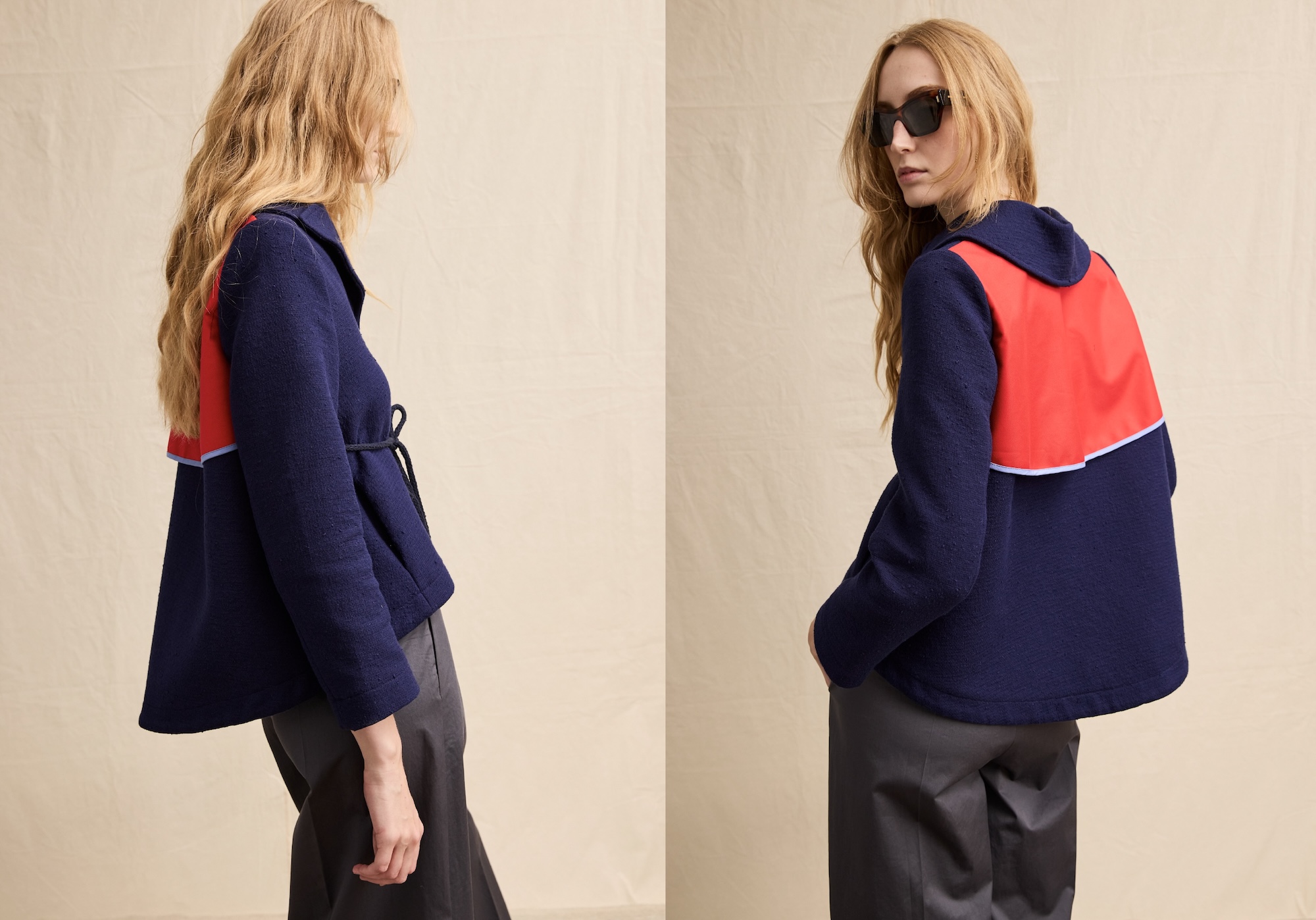 The transitional jacket should feel like an embrace. Ours, finished with a wool pom-pom belt, adds warmth and personality — functional, yet joyfully unexpected.