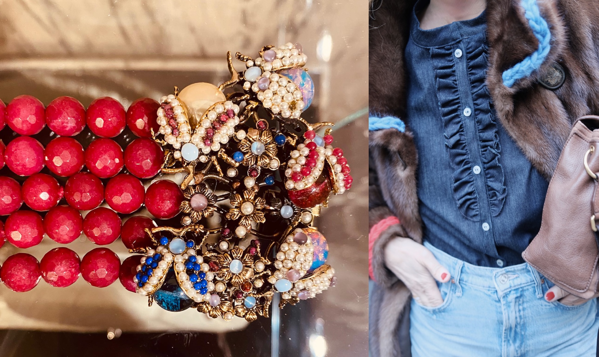 An all-over denim look becomes infinitely more interesting with the addition of vintage jewellery. Think sculptural gold, imperfect stones, heirloom pieces with weight and memory.