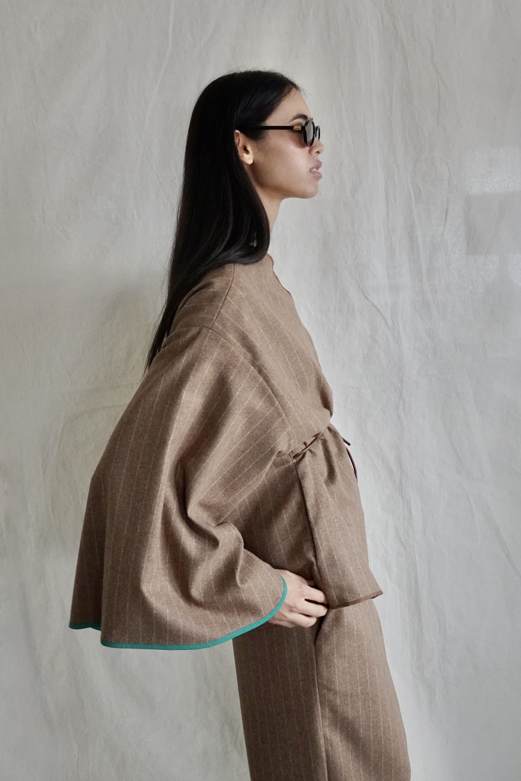 Fabric is always the starting point. Textiles are sourced mainly from Italy and France, including organic cottons and carefully selected Pierre Frey archive fabrics. These Pierre Frey pieces — used exclusively for our vests and kimono jackets — are produced in strictly limited editions and are not part of the sale.