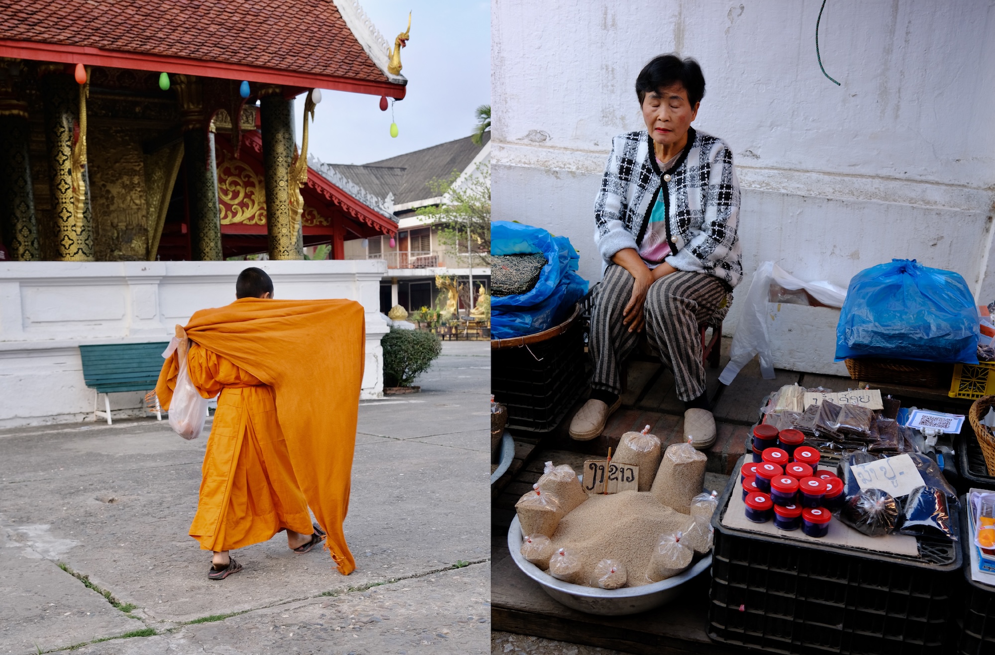 Lunch can be taken at Luang Prabang Tea House or at Mr Lair Omelette Shop, known for a Lao interpretation of the Vietnamese bánh xèo.