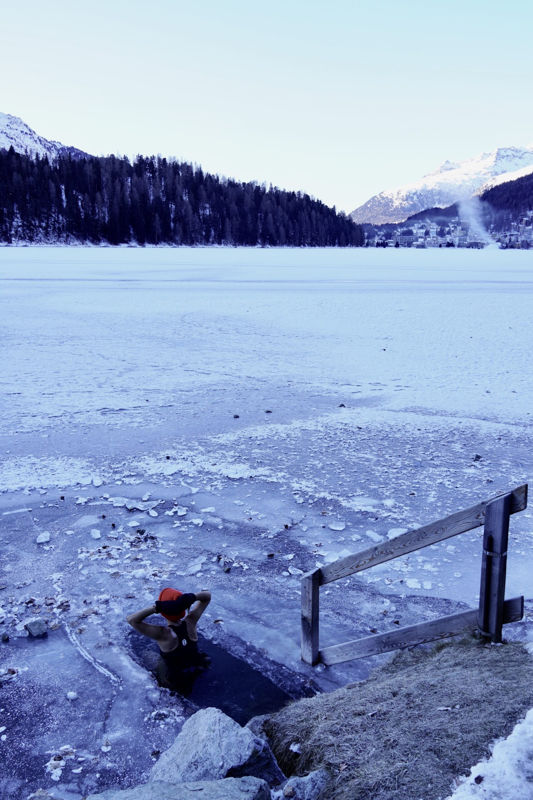 Cold exposure and breathwork appear as tools rather than challenges. That I noticed not only during a night walk with fire pokers, but during a morning cold plunge at lake St. Moritz with minus 20 degrees outside temperature. Believe me, it felt warm once stepping into the water which was (only) 3°C cold.
