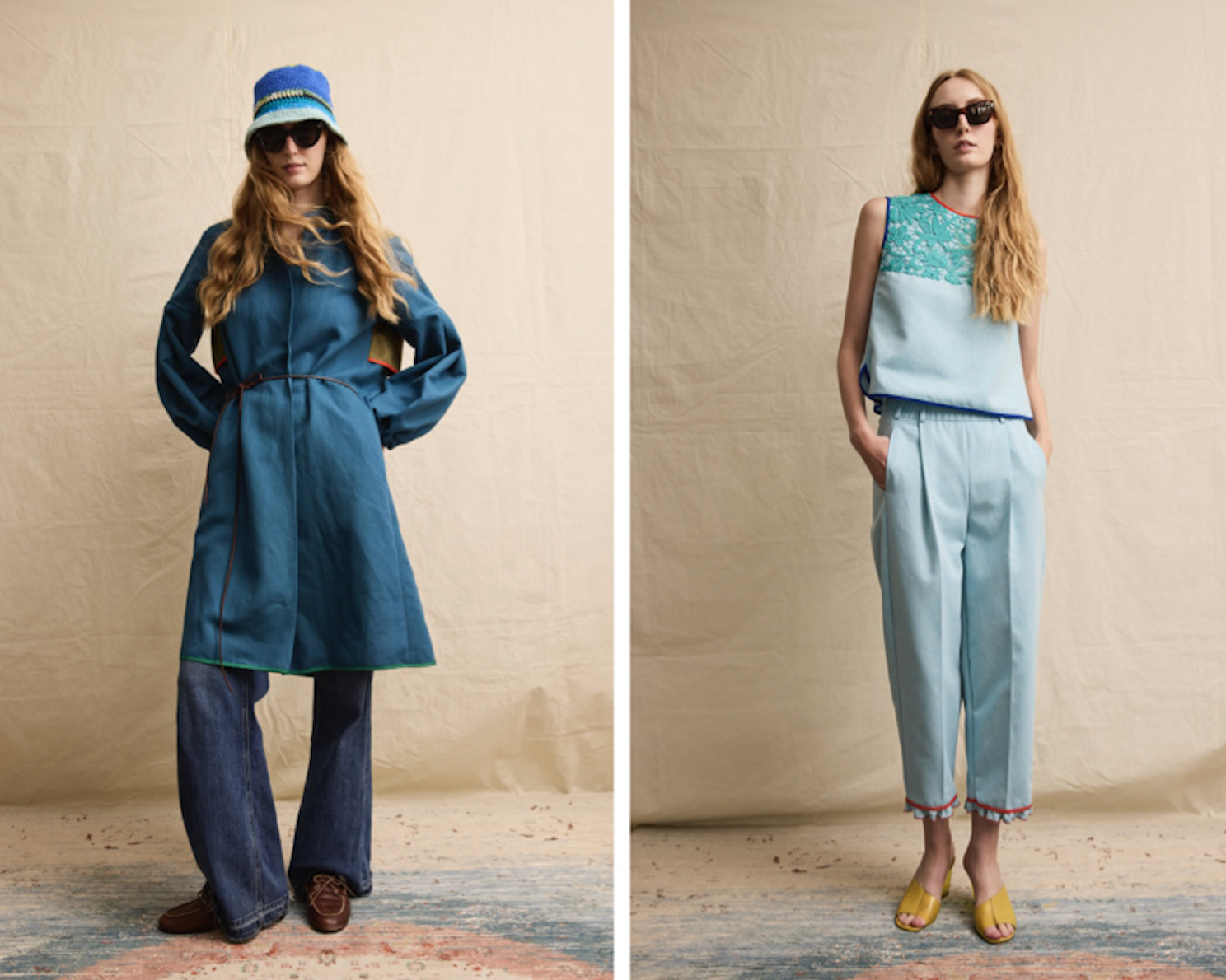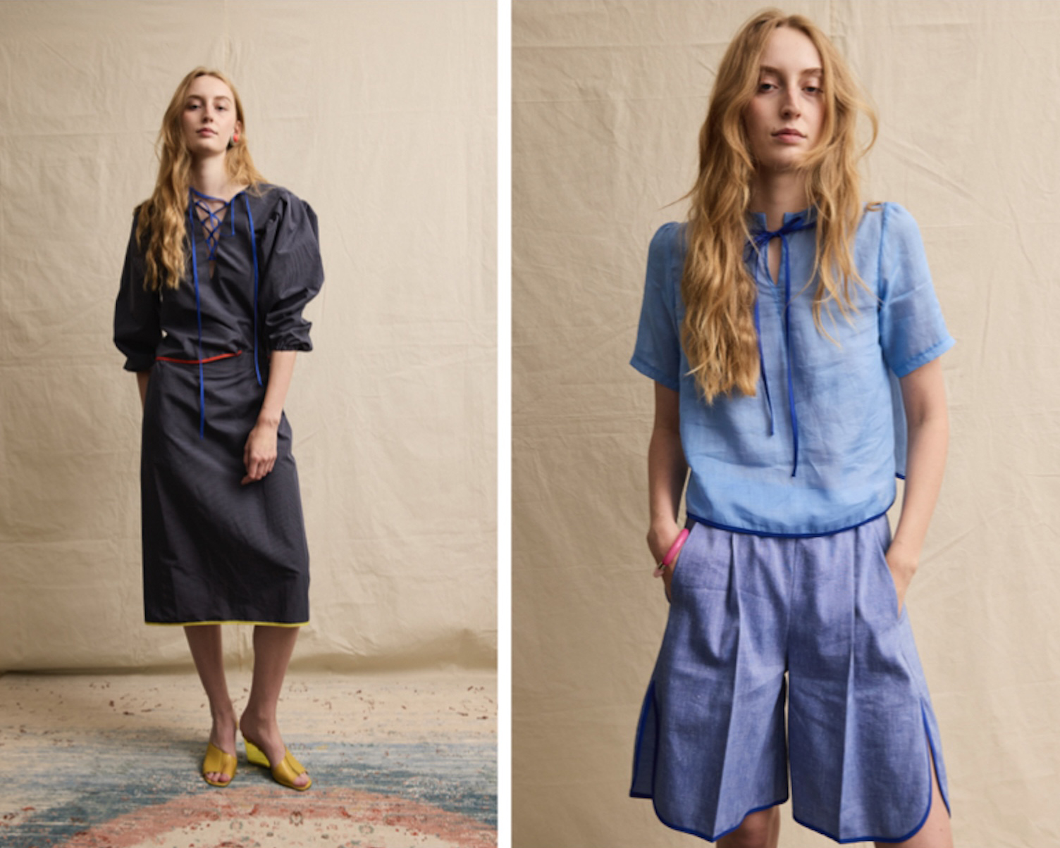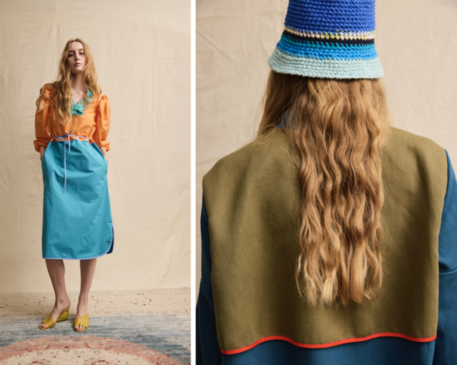 This season, the Jasmin Khezri collection celebrates the diversity of summer climates. Whether you are by the Mediterranean Sea or in the beautiful Engadin Valley, these clothes are suitable for any setting. Key features include layering and artisan details, which lend her sporty yet elegant designs inspiration from both the sea and the mountains. Colours are soft and sun-faded, contrasting with a vibrant palette of primary colours for natural cottons and linens.