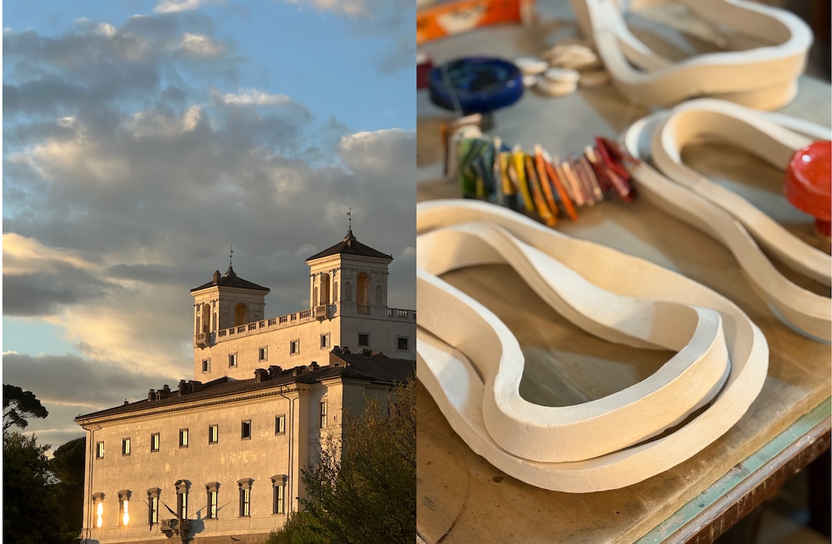 Light is equally significant in shaping her practice. Rome’s natural light—distinctive for its clarity and warmth—changes the appearance of buildings and objects throughout the day. Bresele pays close attention to how surfaces absorb, reflect, or diffuse this light. Travertine, volcanic stone, plaster, and terracotta all react differently, creating subtle shifts in colour and volume. This observation translates directly into her ceramic work, where she experiments with glazing and surface textures to create objects that interact with light rather than simply hold it. She often describes light in Rome as an “active design factor”, something she adjusts her materials and forms to respond to, rather than treat as a neutral condition.