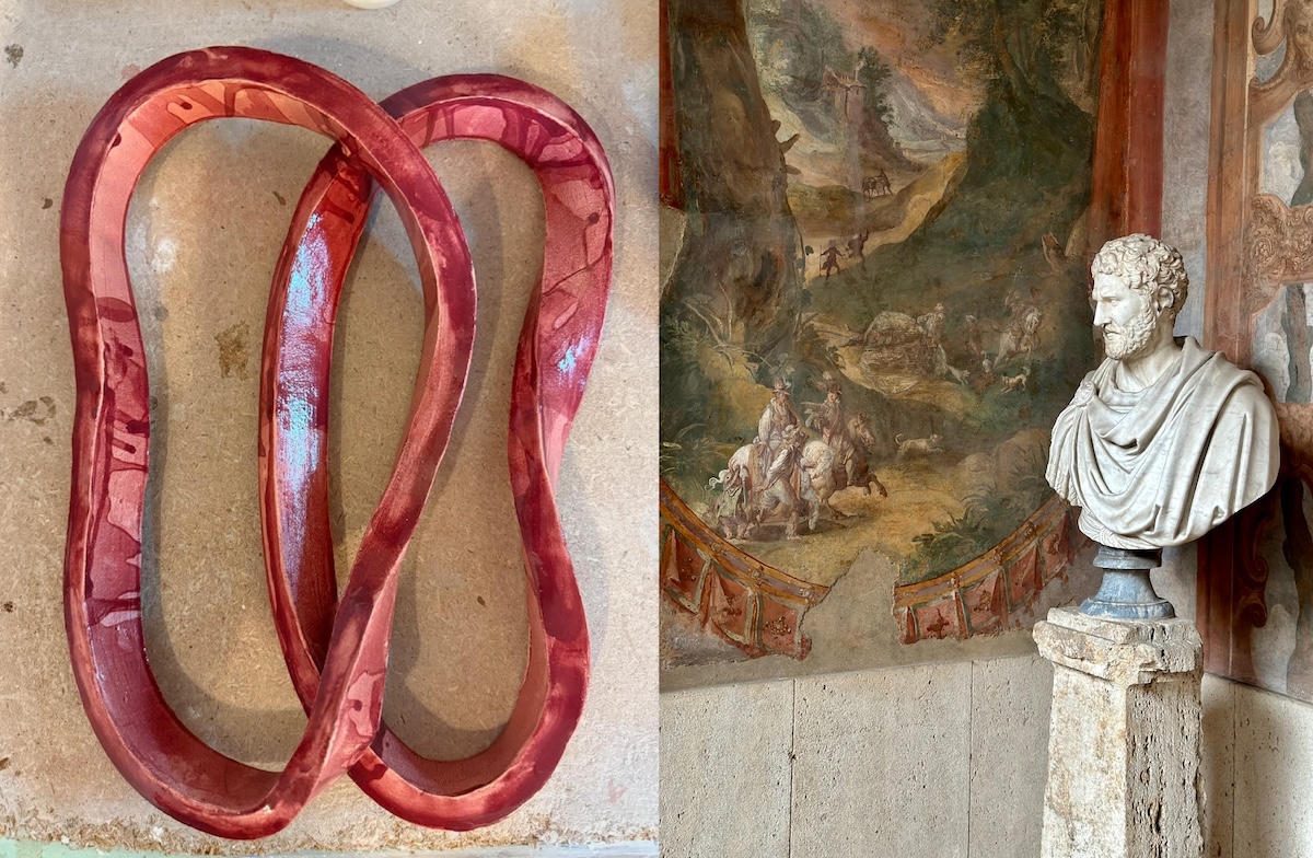 Rome’s architecture forms the most immediate influence. The city presents a layered panorama of classical structures, medieval streets, rationalist buildings, and ad-hoc neighbourhood adaptations. For Bresele, this mix offers a living archive of proportions, surface treatments, and spatial solutions. When she walks through districts like Monti, Testaccio, or the historic centre, she observes how façades are restored, how materials age, and how public spaces adapt to new uses. This constant exposure informs her understanding of structure. In her ceramics, for instance, she often works with controlled, architectural forms that deliberately carry a degree of irregularity—a balance she recognises everywhere in Rome’s built environment.