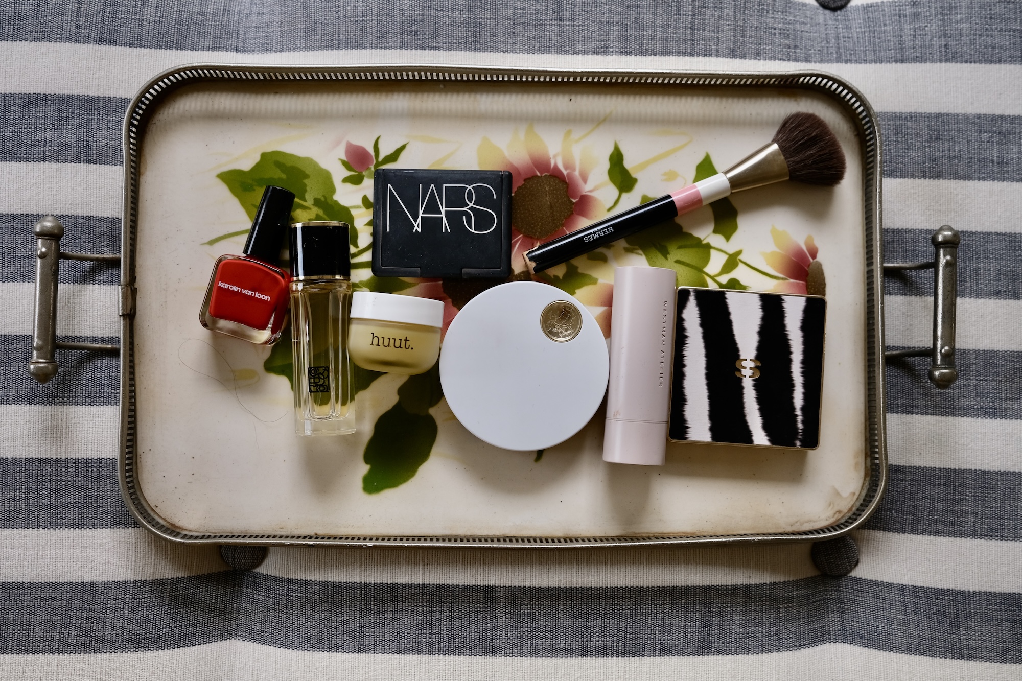 The Complexion Edit is equally refined. A touch of Westman Atelier complexion products lends the skin its signature barely-there polish — creamy textures that blur the line between skincare and makeup. For the eyes, Sisley’s Phyto-Eye Palette No. 2 Bois de Rose offers a complete, softly defined look in a single compact, suitable for day and evening wear, and can also be used to add a touch of glow to the cheeks. Hermès Plein Air Complexion powder adds warmth to the skin after long journeys, while NARS Rosé cheek colour completes the look with understated ease.